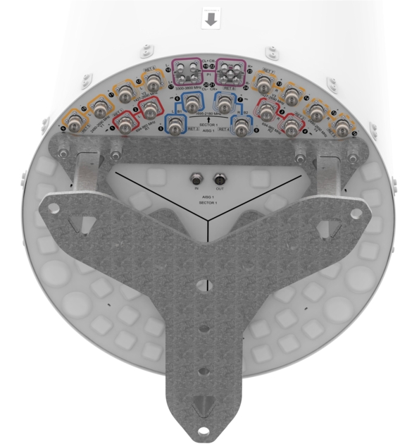 24-port sector antenna, 4x 694-960, 4x 1427-2690, 4x 1695-2180, 4x 2490-2690MHz 65° HPBW and 8x 3300-3800 MHz, 90° HPBW, 24x RET