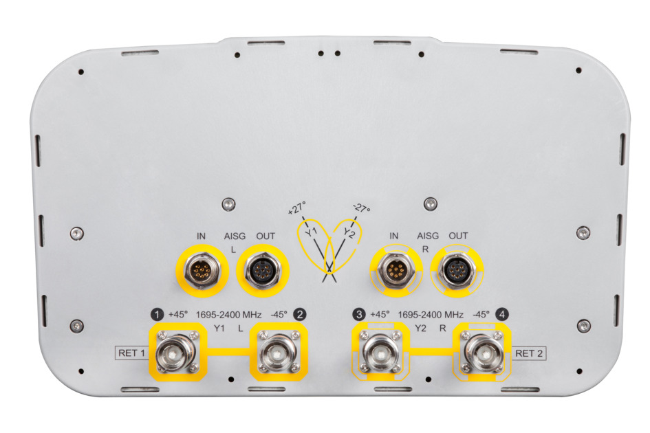 4-port multibeam antenna, 4x 1695–2400 MHz, 2x 38° HPBW, 2x RET