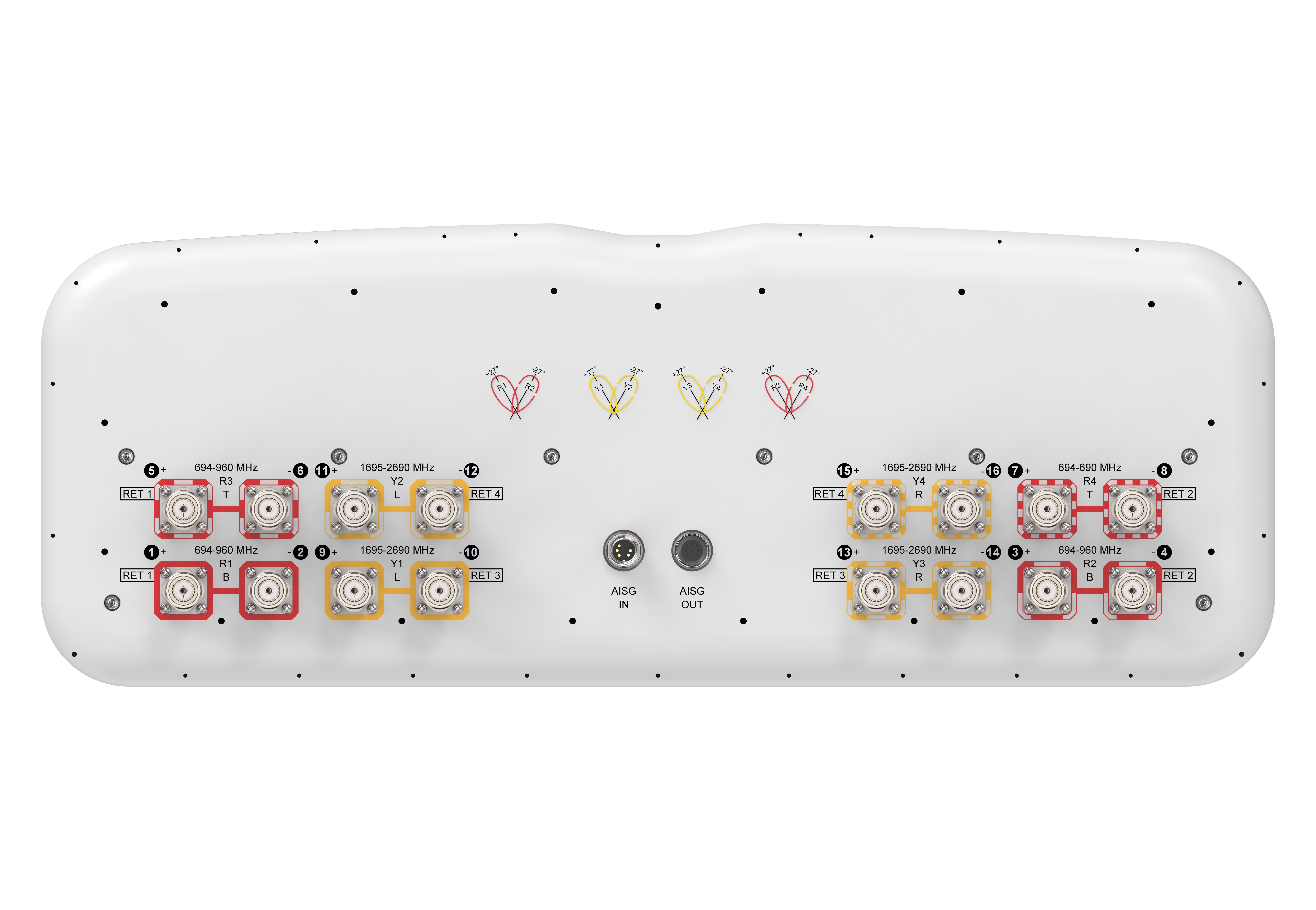 16-port multibeam antenna, 8x 694–960 MHz, 2x 2-beam 33° HPBW and 8x 1695–2690 MHz, 2x 2-beam 33° HPBW, 4x RET