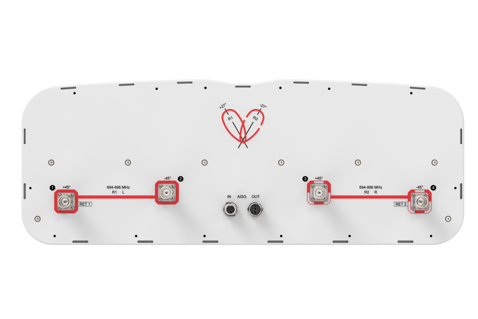 - Integrated Internal Remote Electrical Tilt (RET), with independent control of electrical tilt on both beams