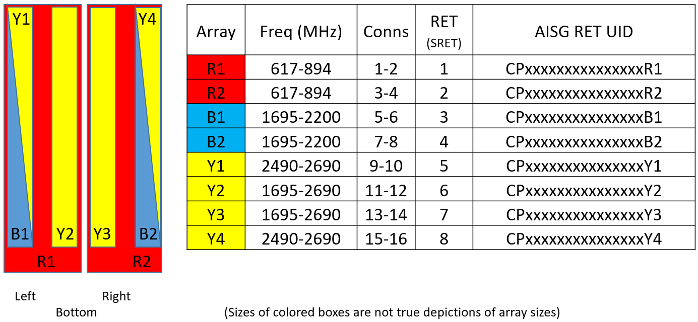 | Internal RET | High band (6) | Low band (2) |