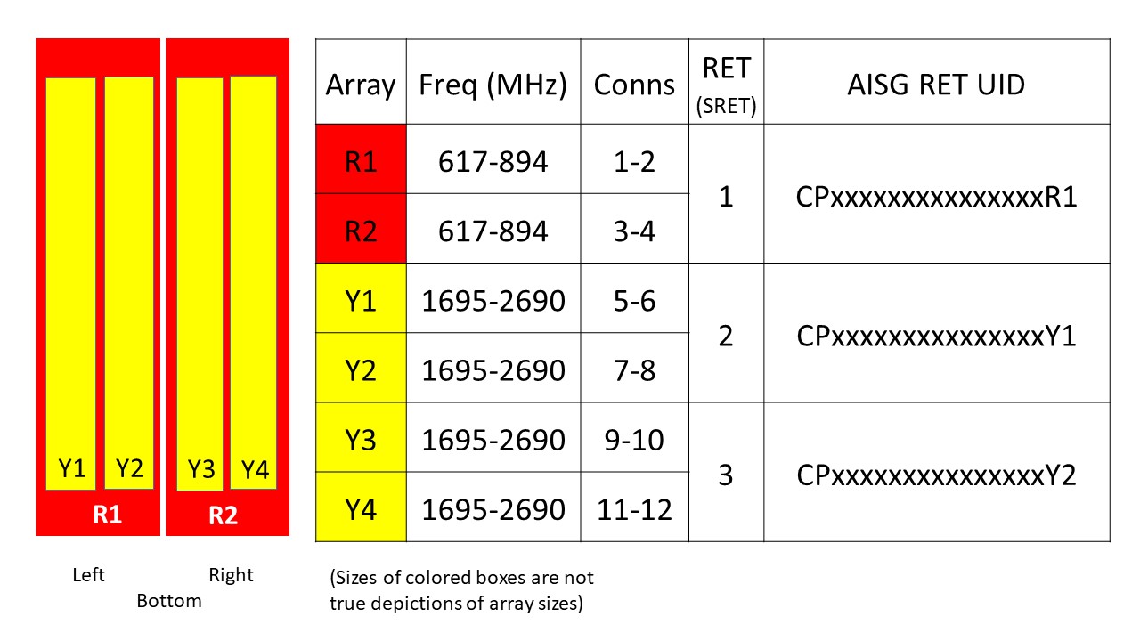Internal RET High band (2) | Low band (1)