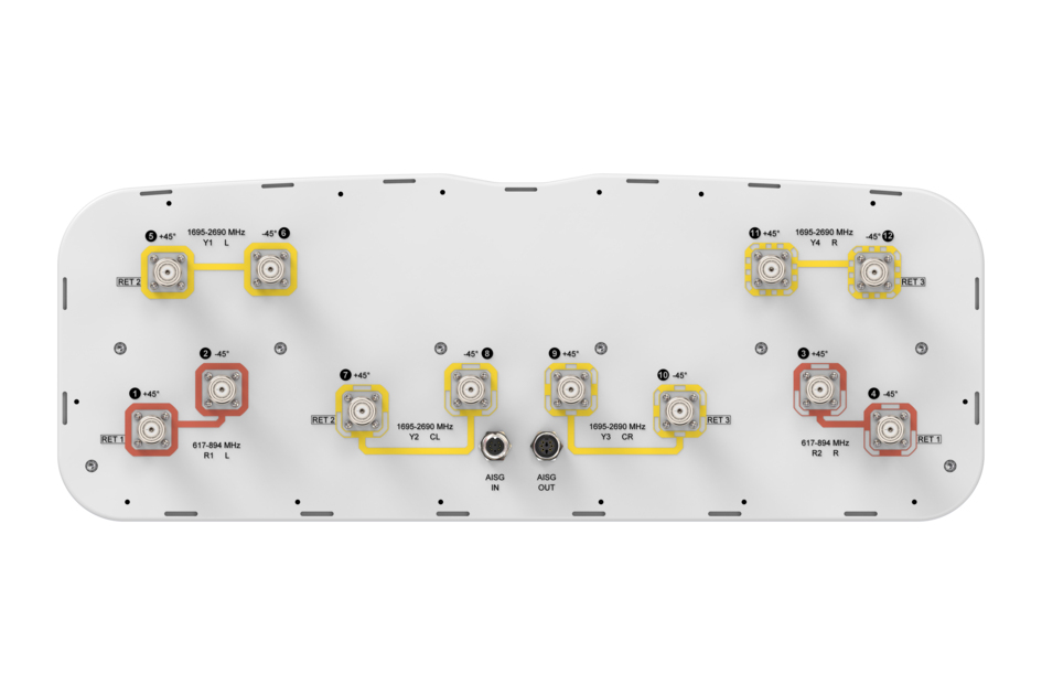 12-port sector antenna, 4x 617-894 and 8x 1695–2690 MHz, 65° HPBW, 3x RET
