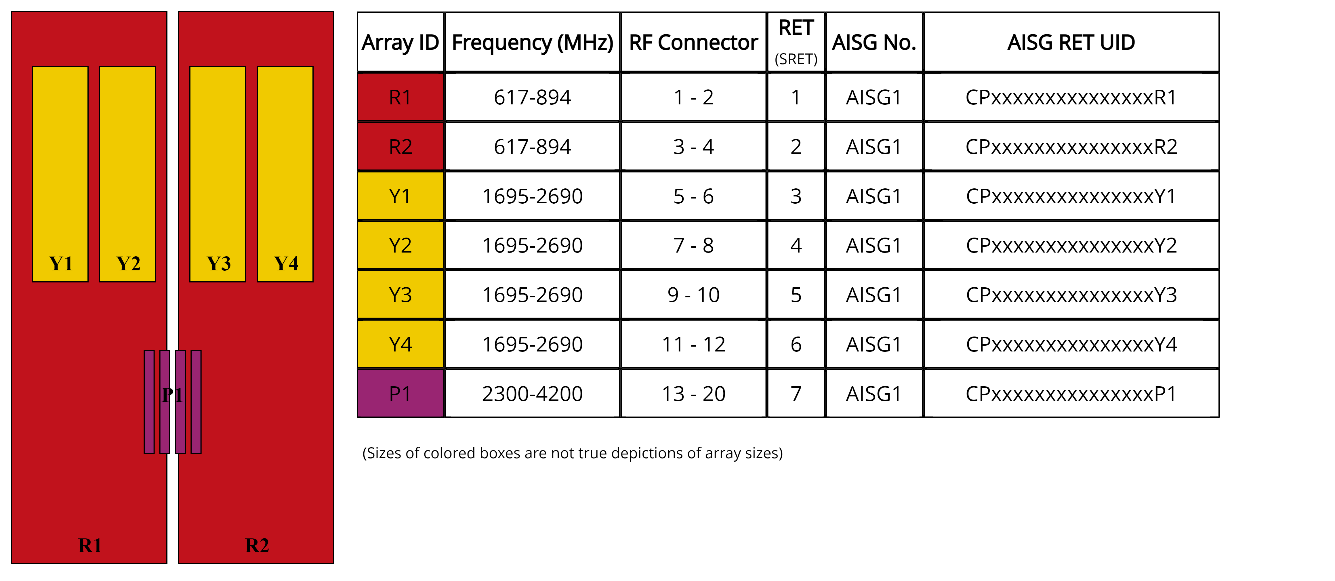 | Internal RET | High band (1) | Low band (2) | Mid band (4) |