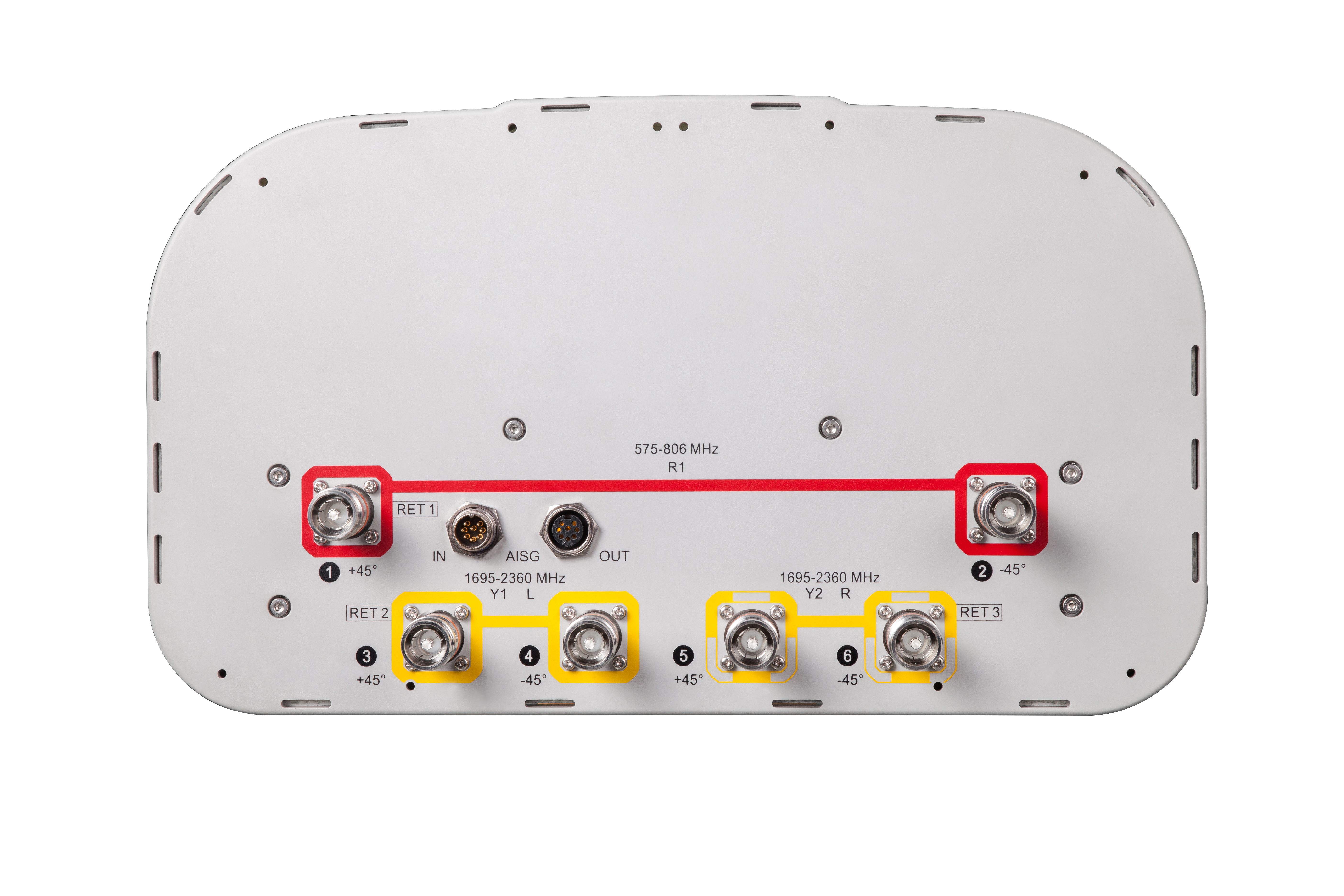 6-port sector antenna, 2x 617-806 and 4x 1695–2360 MHz, 65° HPBW, 3x RET, 600 MHz-Ready Antenna Technology