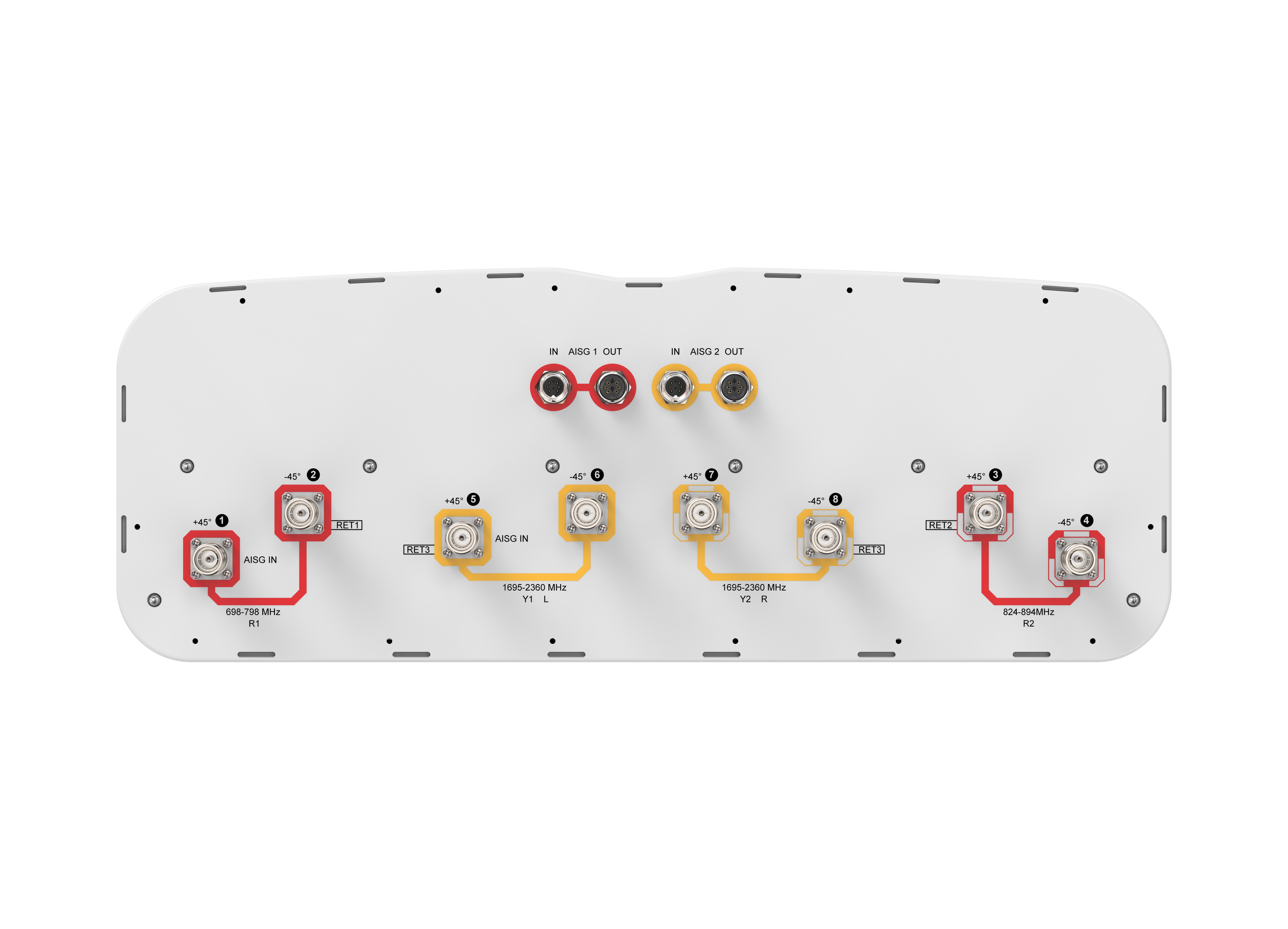 - One RET for 700MHz, one RET for 850MHz, and one RET for both high bands to ensure same tilt level for 4x Rx or 4x MIMO