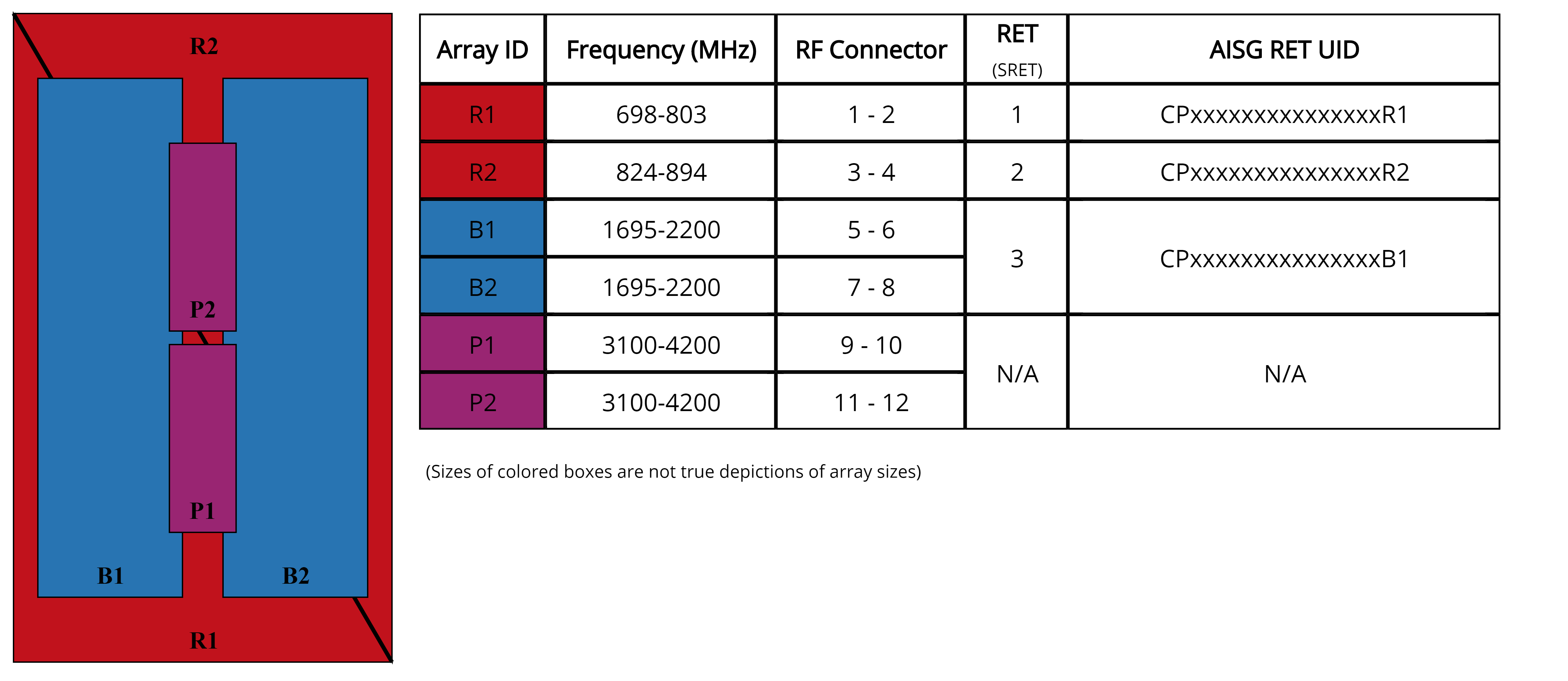 - Two LB RET and one HB RET. Both high bands are controlled by one RET to ensure same tilt level for 4x MIMO