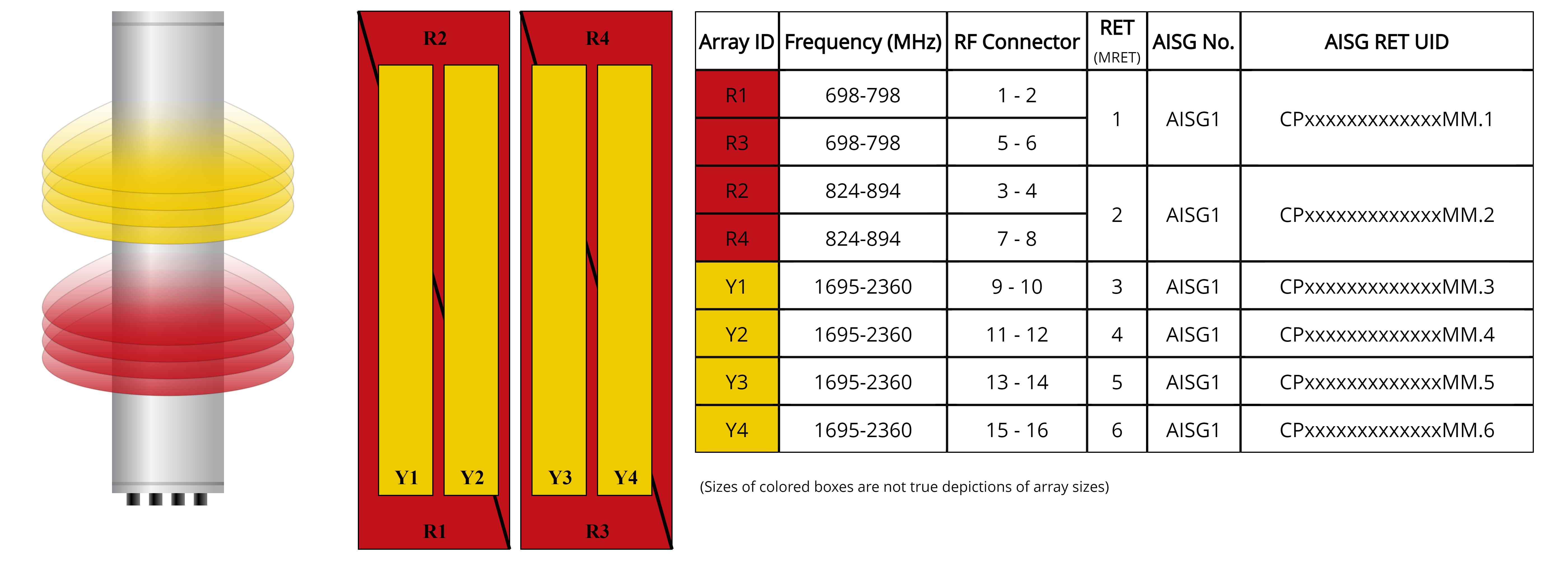 - Features broadband Low Band (698-894 MHz) and High Band (1695-2360 MHz) arrays for 4T4R (4X MIMO) capability for 700 and 850 MHz, AWS, PCS and WCS applications