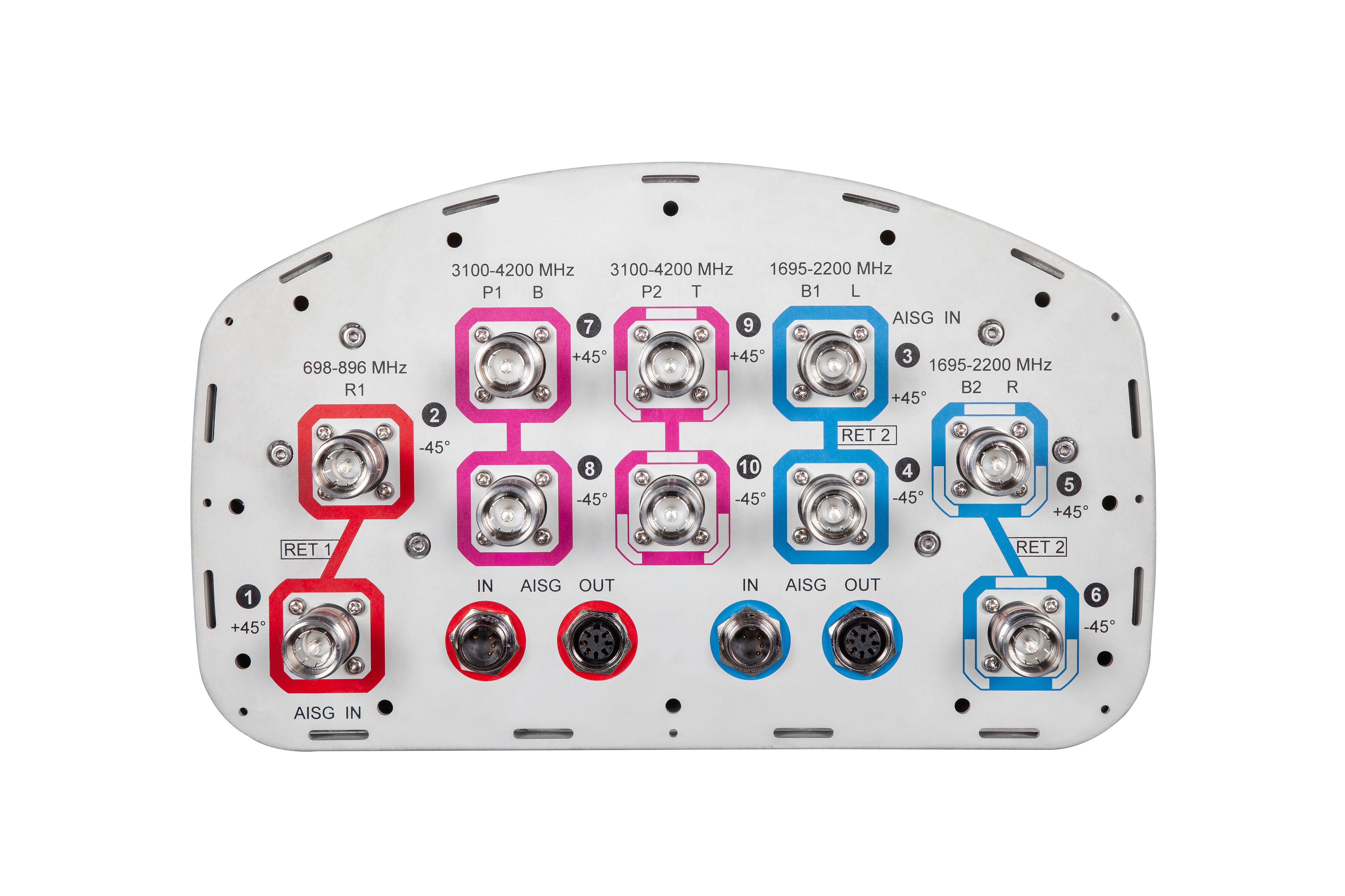 • One LB RET and one HB RET. Both high bands are controlled by one RET to ensure same tilt level for 4x MIMO