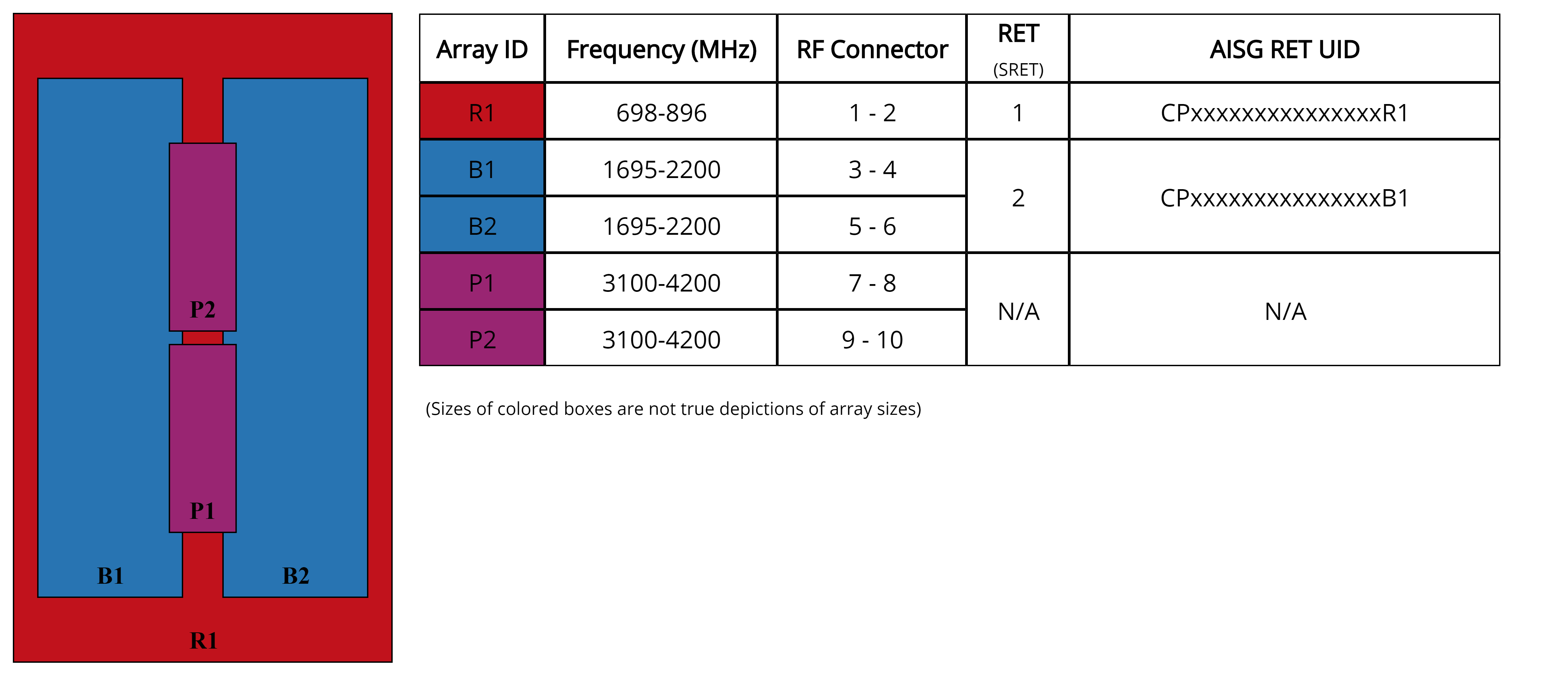 • One LB RET and one HB RET. Both high bands are controlled by one RET to ensure same tilt level for 4x MIMO