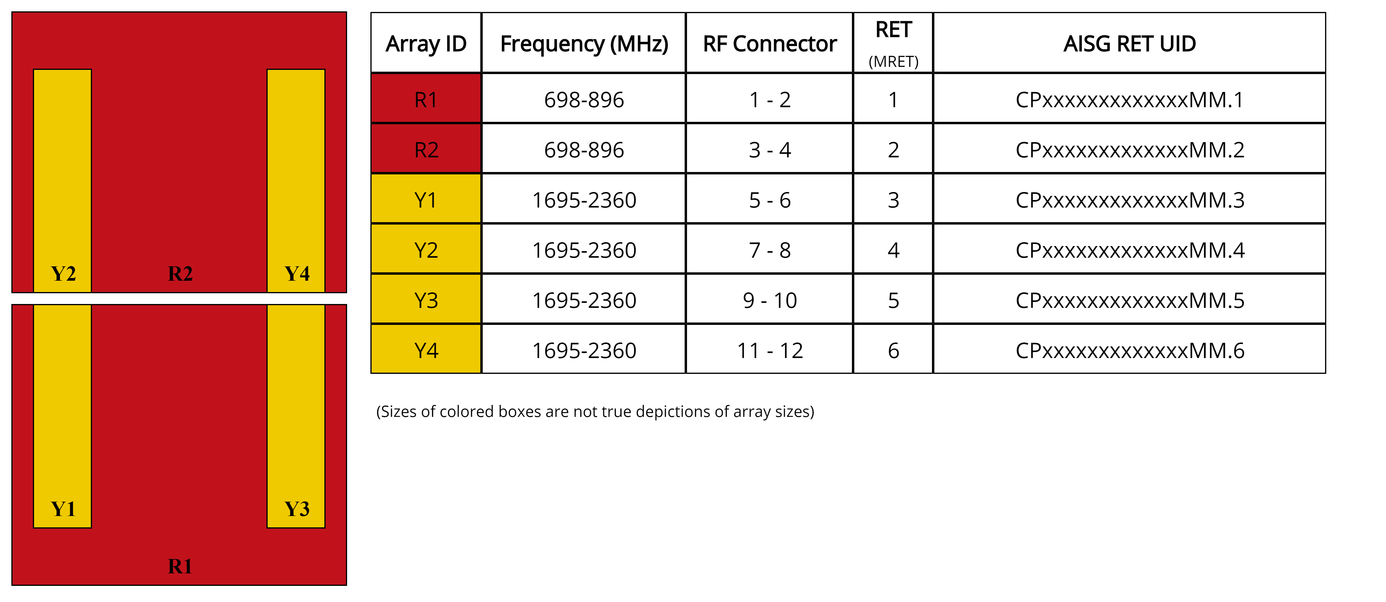• Array configuration provides capability for 4T4R (4x MIMO) on Low band and Dual 4T4R (4x MIMO) on High band