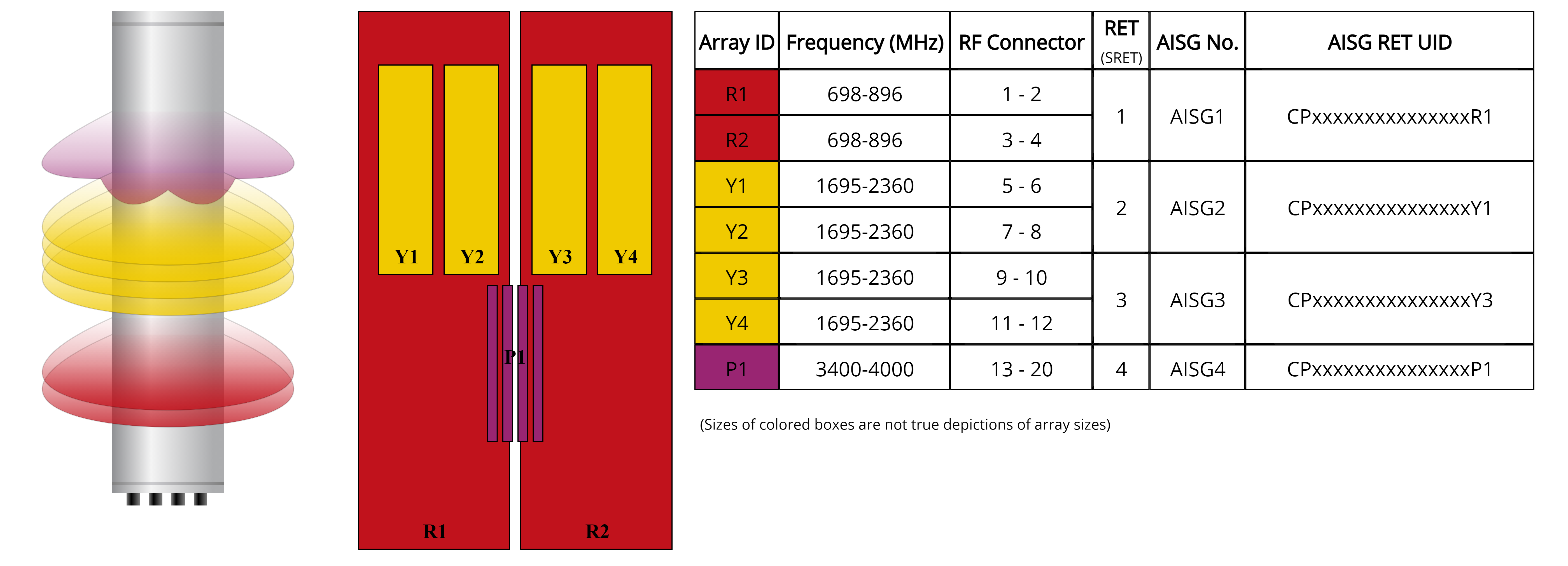 Internal RET High band (1) | Low band (1) | Mid band (2)