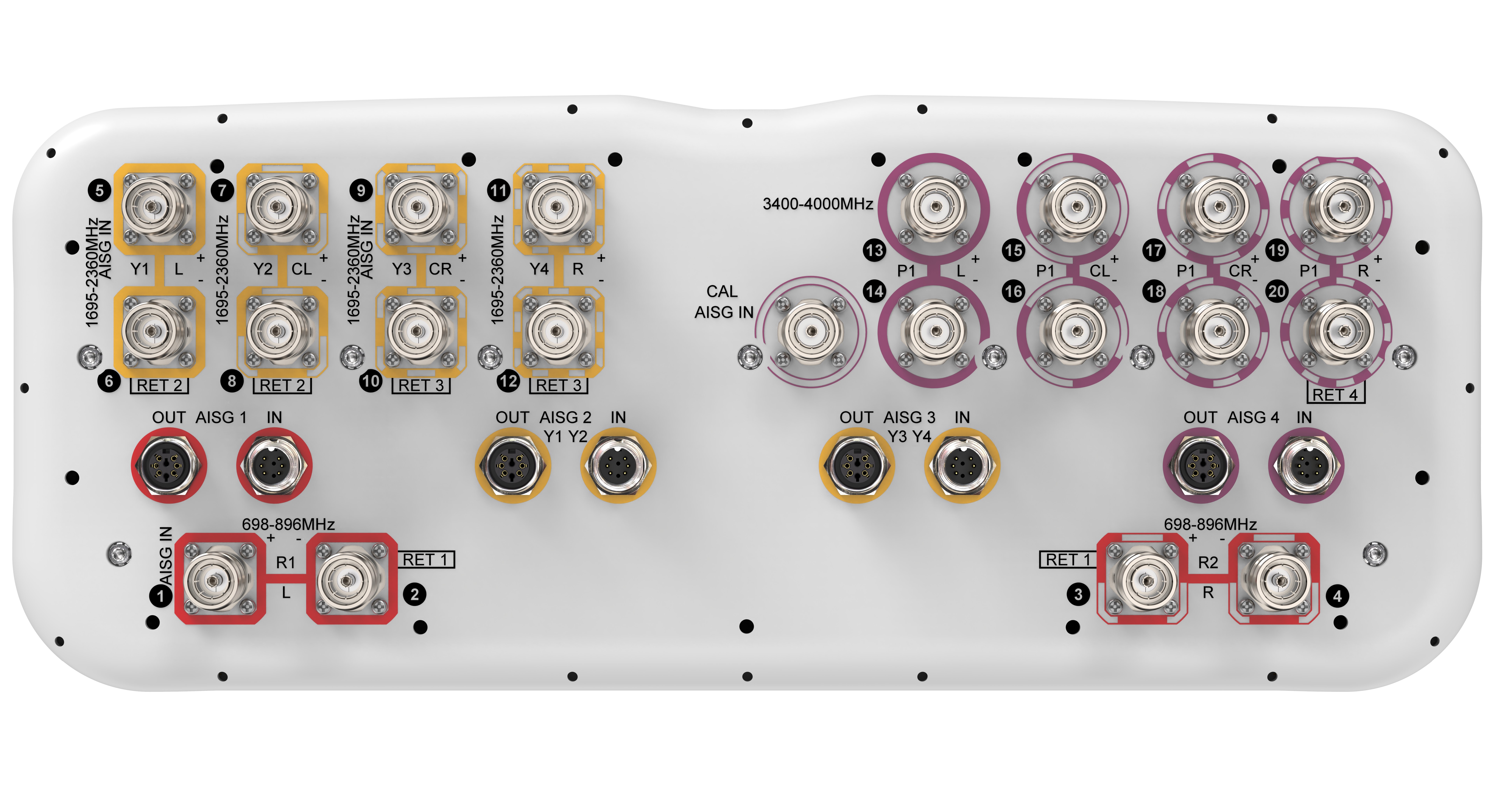 20 Port Sector Antenna & Beamforming , 4x698-896 MHz, 8x1695-2360 MHz, 65° HPBW and 8x3400-3550/3700-4000 MHz Beamformer, 4XRET