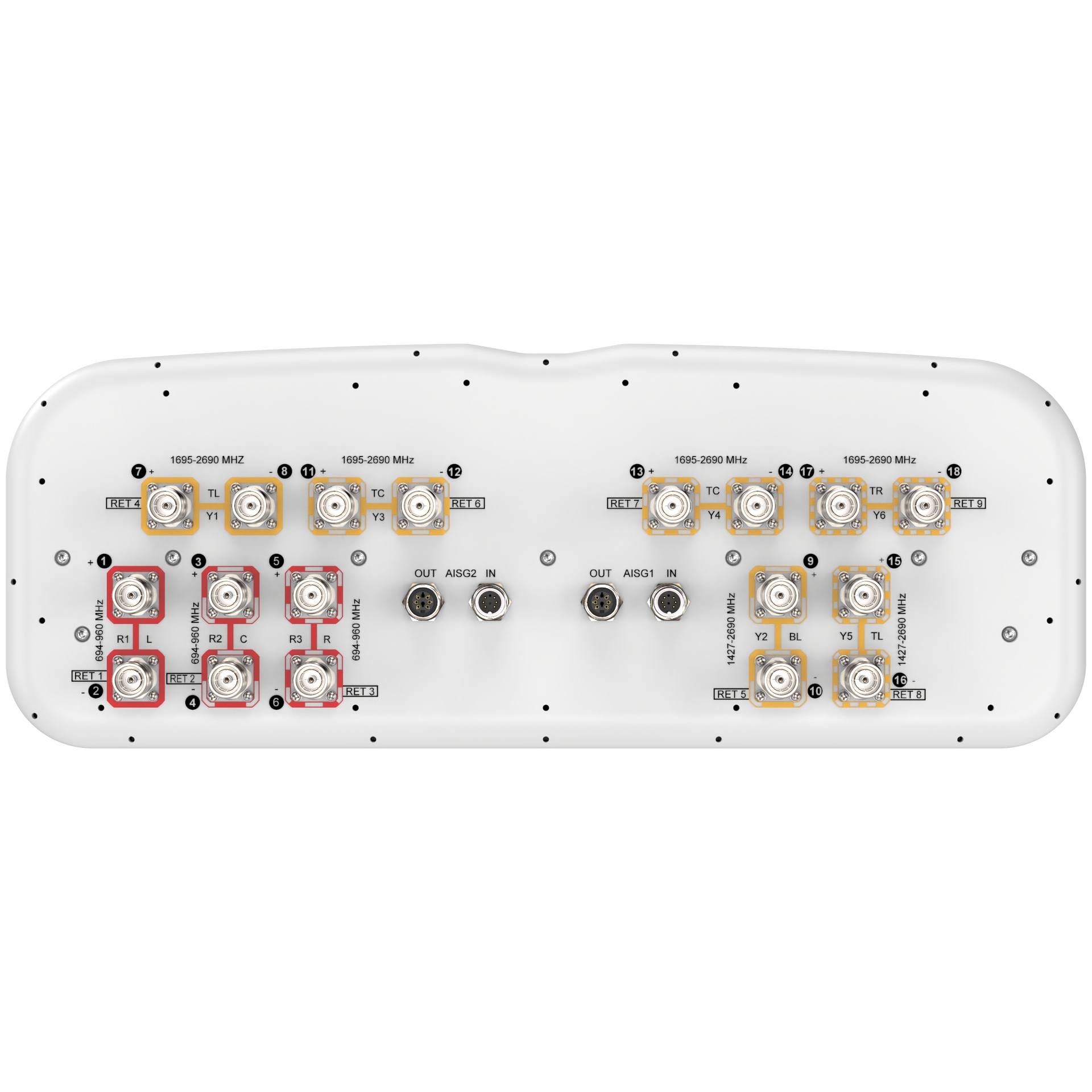 18-port sector antenna, 6x 694-960, 4x 1427-2690 and 8x 1695-2690 MHz, 65° HPBW, 9xRET
