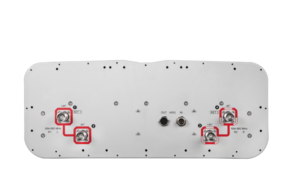 4-port sector antenna, 4x 694–960 MHz, 65° HPBW, 2x RET