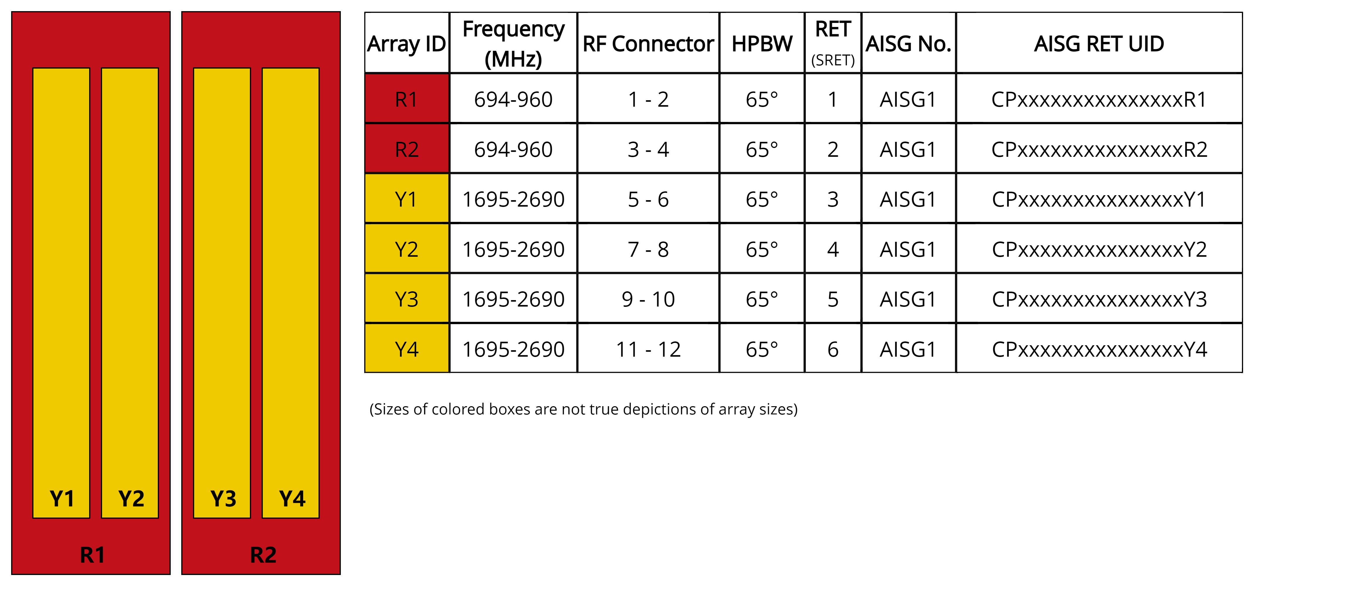 • Array configuration provides capability for 4T4R (4x MIMO) on Low band and Dual 4T4R (4x MIMO) on High band