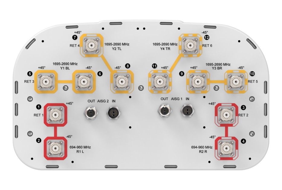 12-port sector antenna, 4x 694–960 and 8x 1695–2690 MHz, 65° HPBW, 6x RET