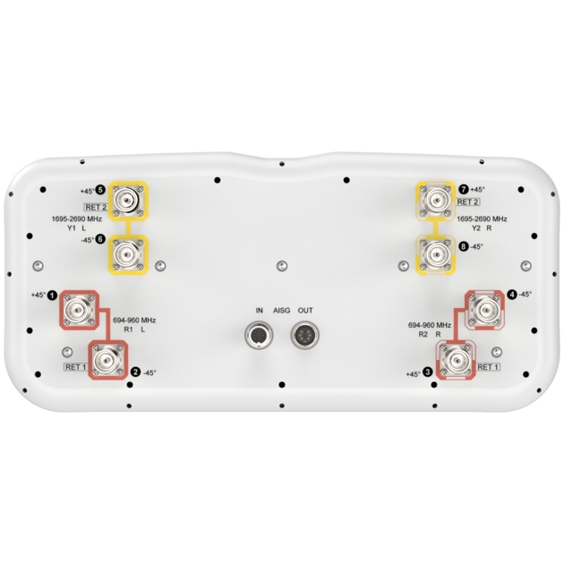 8-port sector antenna, 4 x 694–960 and 4 x 1695–2690 MHz, 65° HPBW, 2x RET