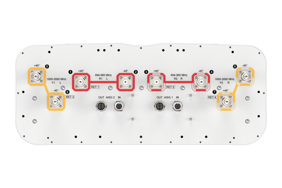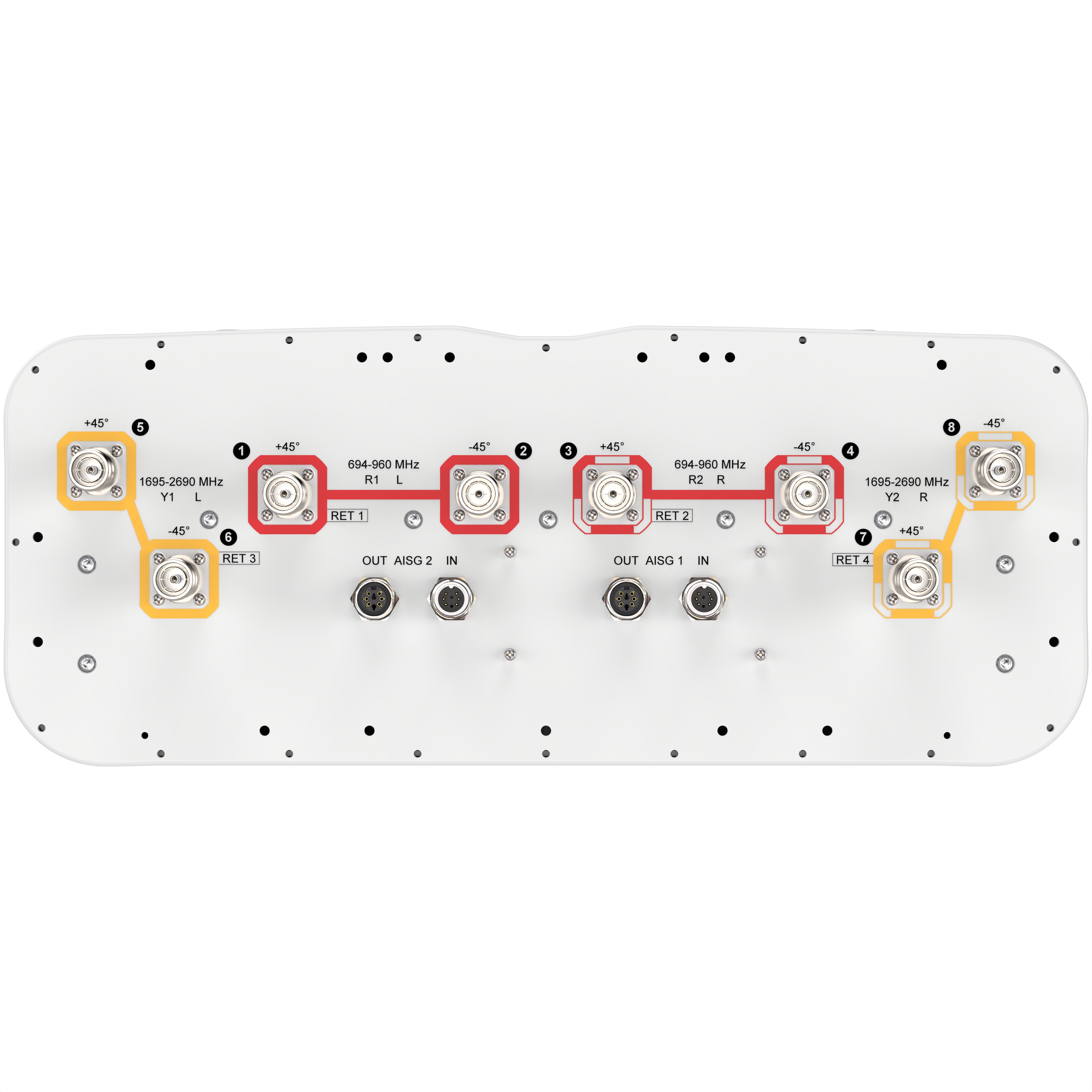 • Supports re-configurable antenna sharing capability enabling control of the internal RET system using up to two separate RET compatible OEM radios (Supports_r)