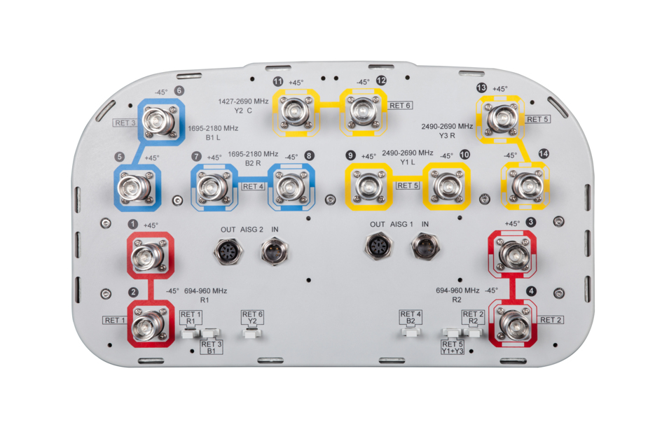 - Supports re-configurable antenna sharing capability enabling control of the internal RET system using up to two separate RET compatible OEM radios (Supports_r)