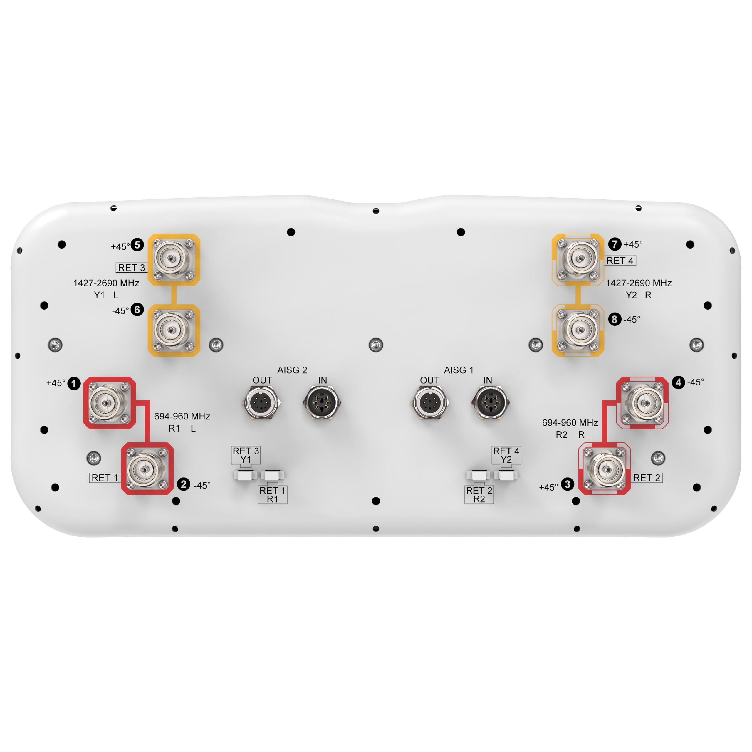 8-port sector antenna, 4 x 694–960, 4 x 1427–2690 MHz, 65° HPBW, 4x RET