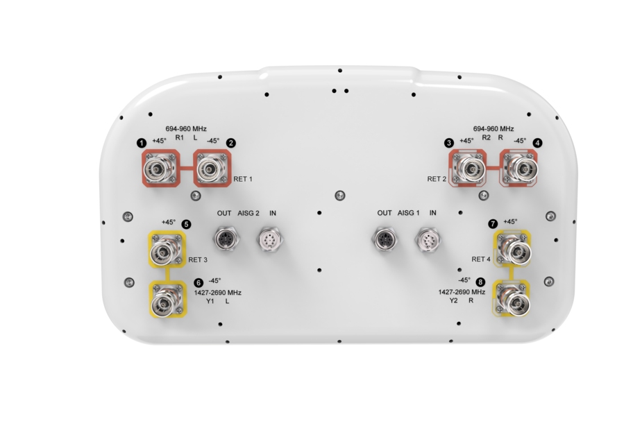 8-port sector antenna, 4x 694–960 and 4x 1427–2690, 65° HPBW, 4x RET