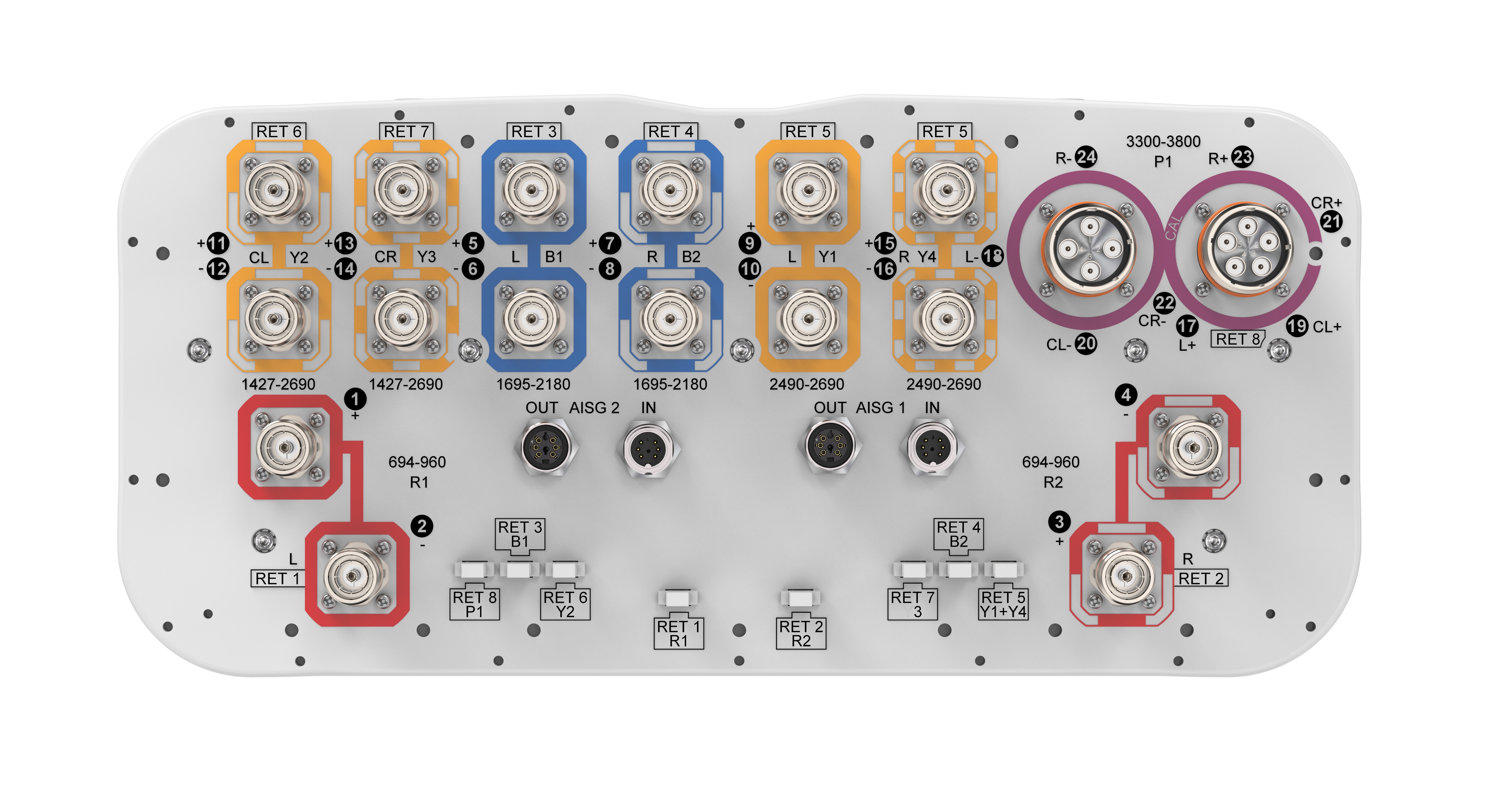 - Includes eight Internal RET’s. All 2490-2690MHz (Y1&Y4) ports share common RET