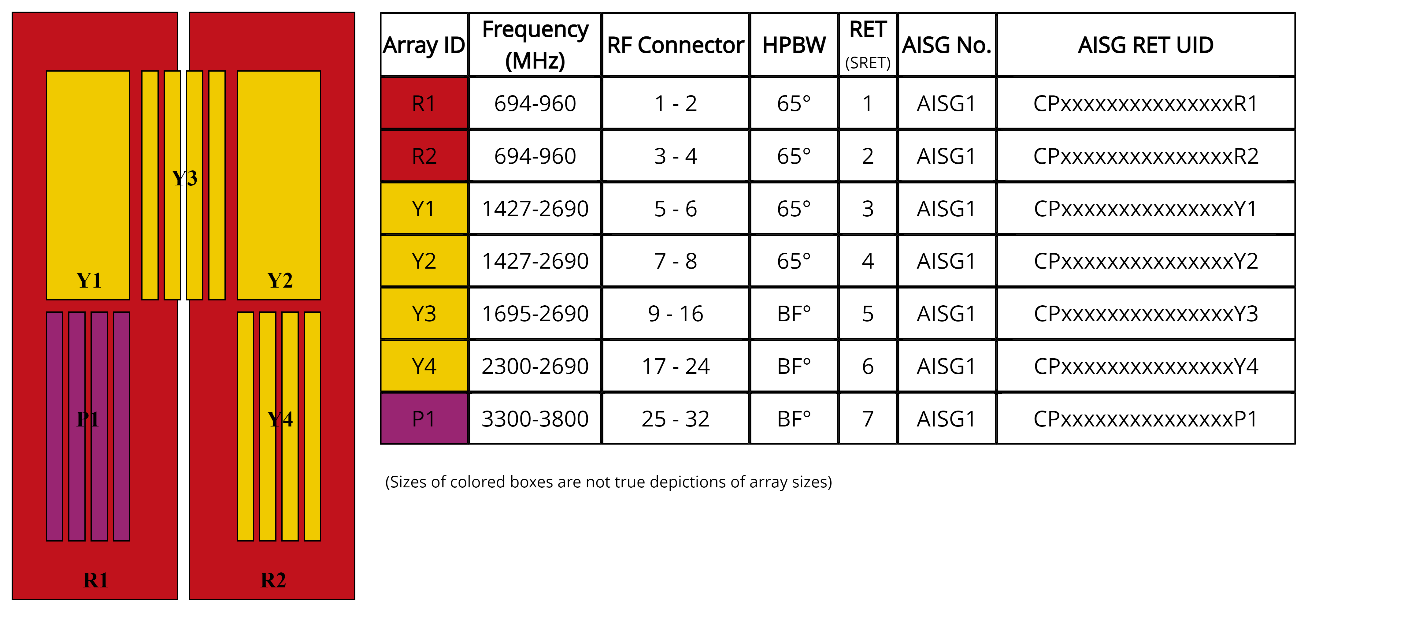 | Internal RET | High band (1) | Low band (2) | Mid band (4) |