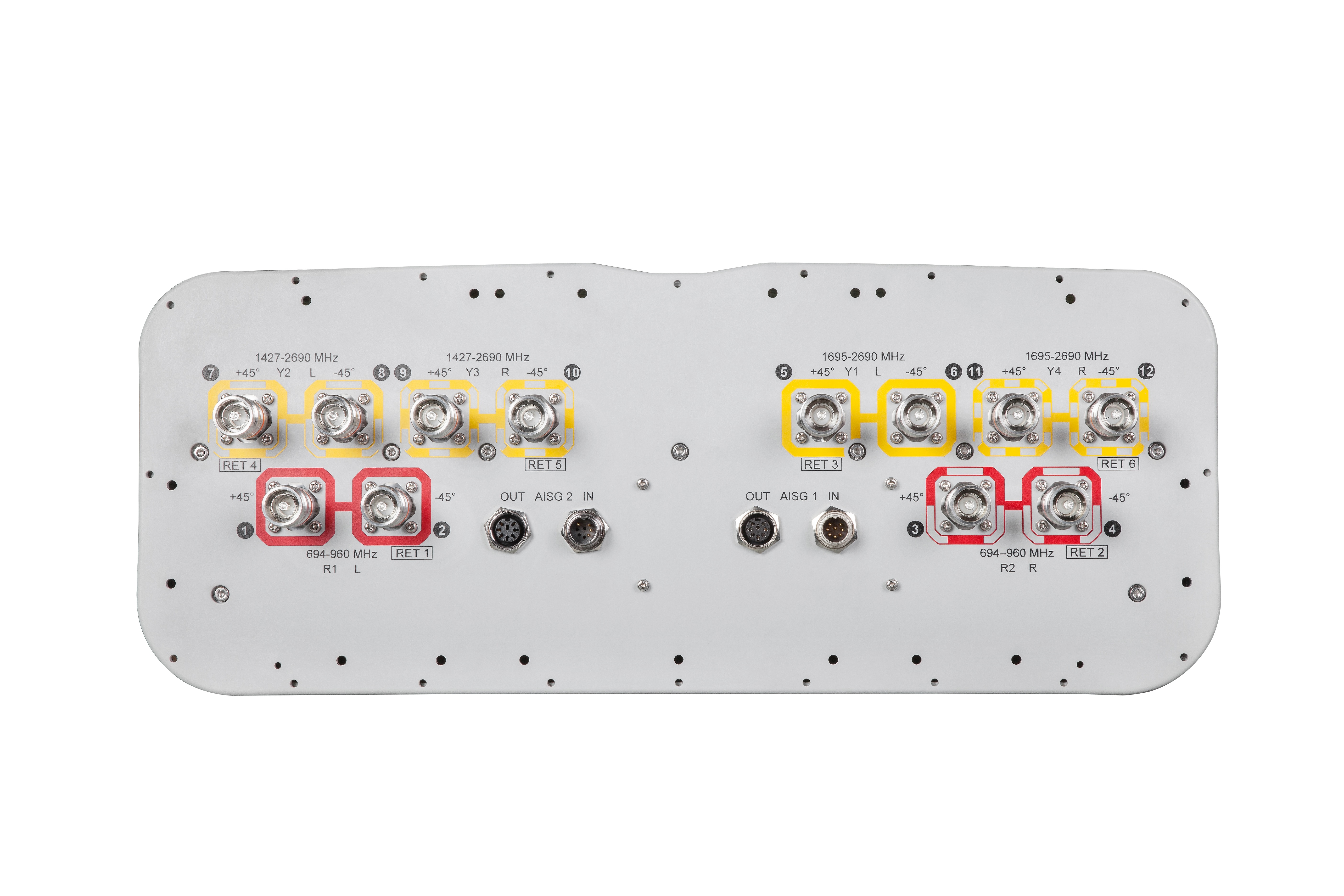 12-port sector antenna, 4x 694–960, 4x 1427–2690 and 4x 1695-2690 MHz, 65° HPBW, 6x RET