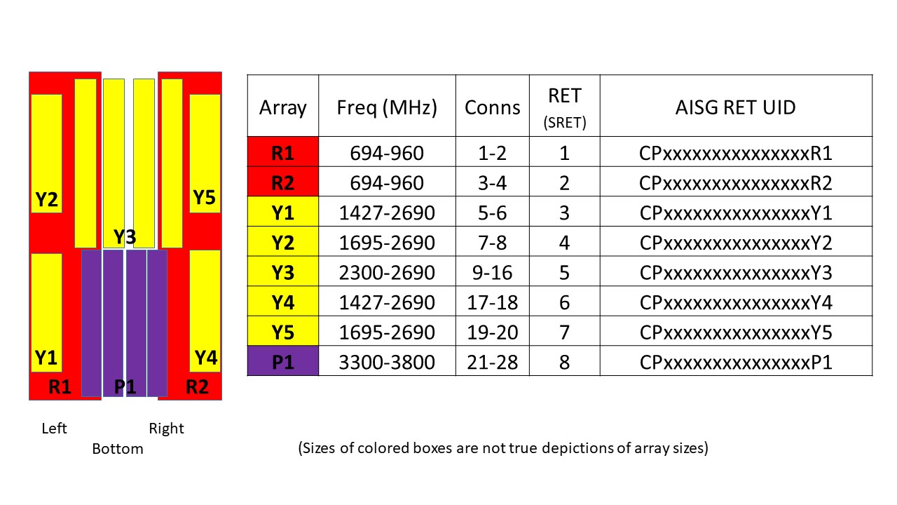 Internal RET High band (2) | Low band (2) | Mid band (4)