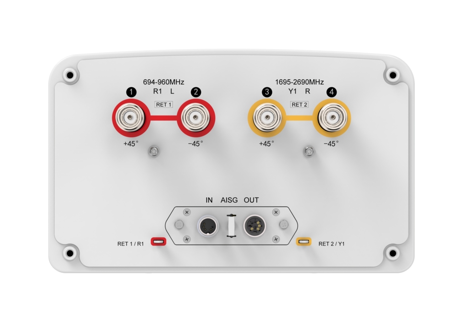 4-port sector antenna, 2x 694–960 and 2x 1695–2690 MHz, 65°HPBW, 2x RET