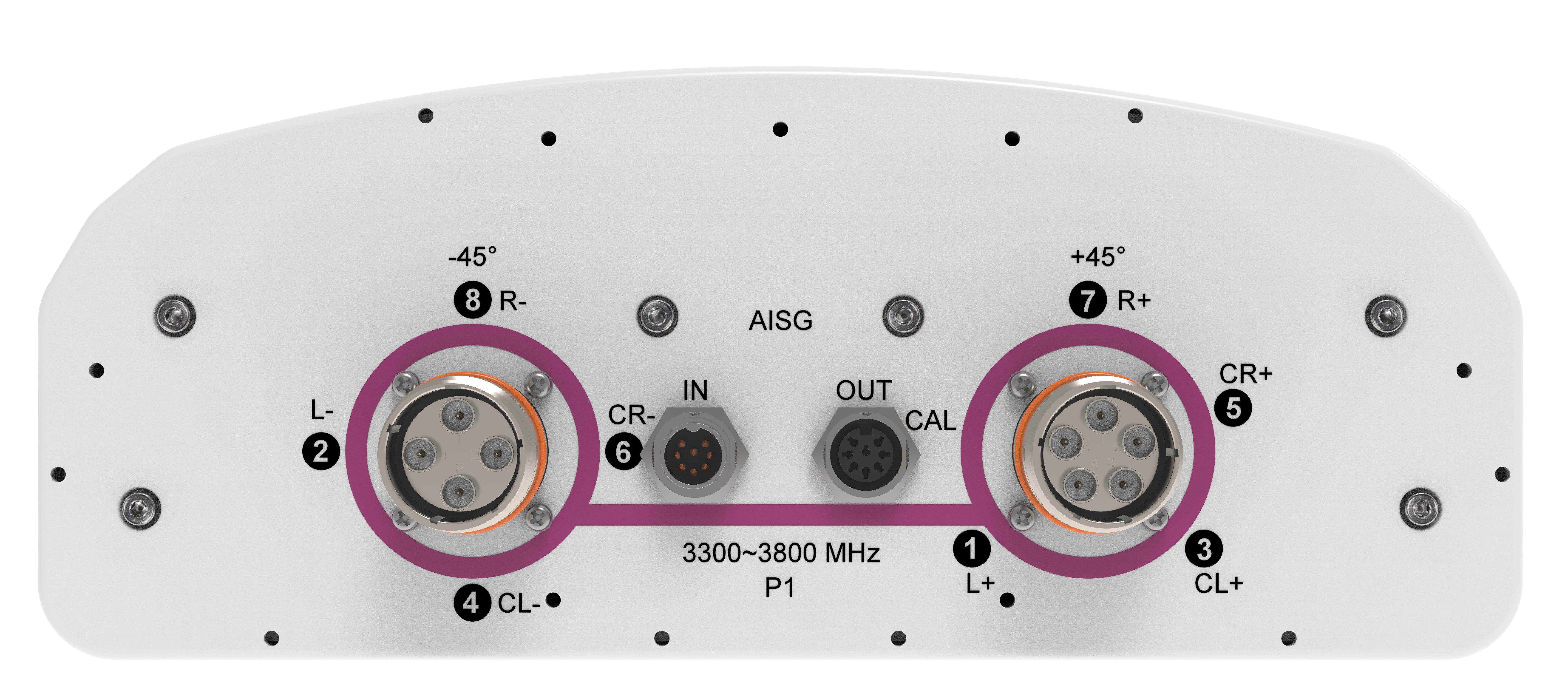 8-port Planar Array Antenna, 3300–3800 MHz, 90° HPBW, 1x RET, with MQ4/MQ5 connectors