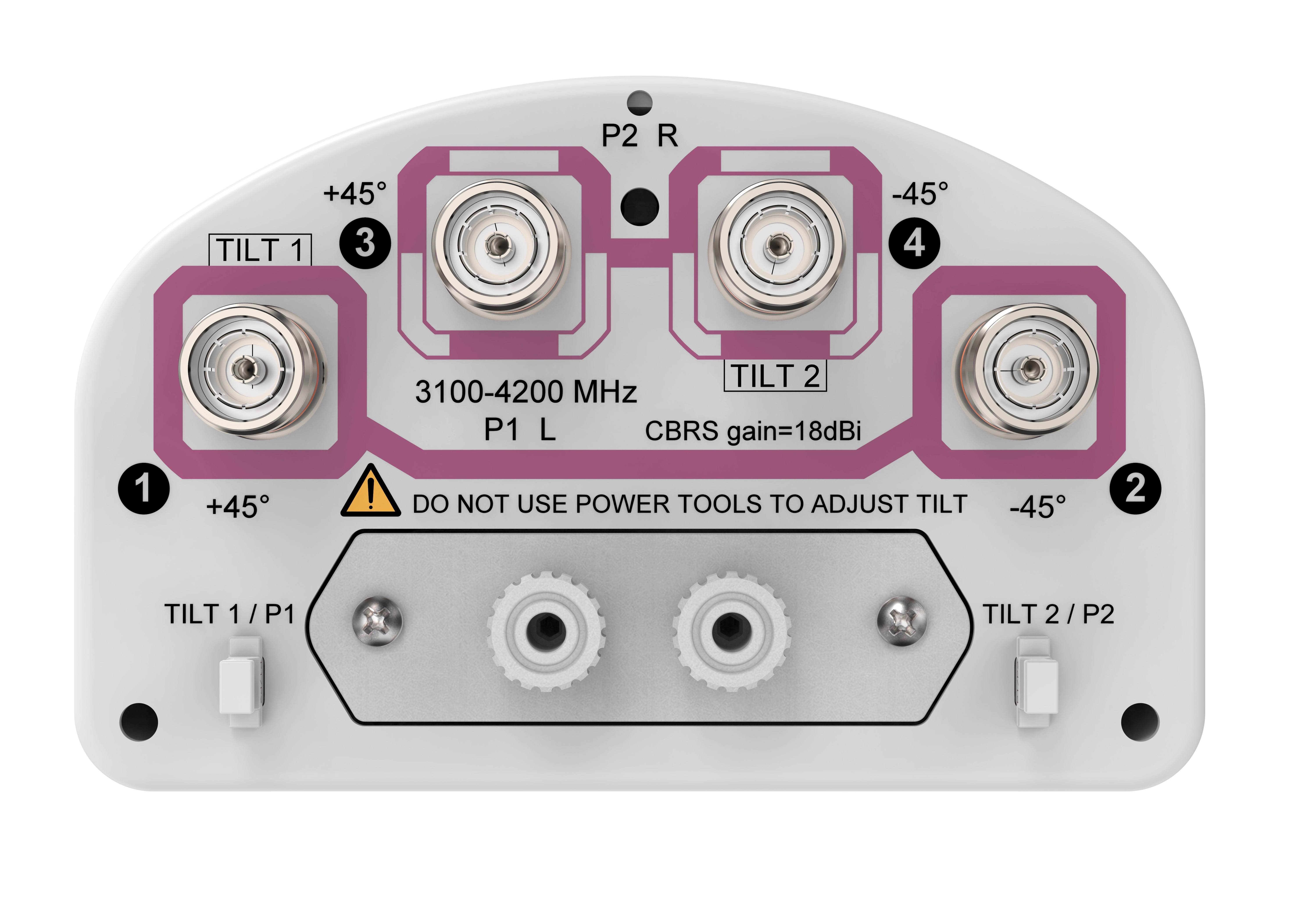 - Manual tilt adjustment with tilt indicators. RET compatible by replacing the manual tilt cartridge on site with the “plug-in” RET