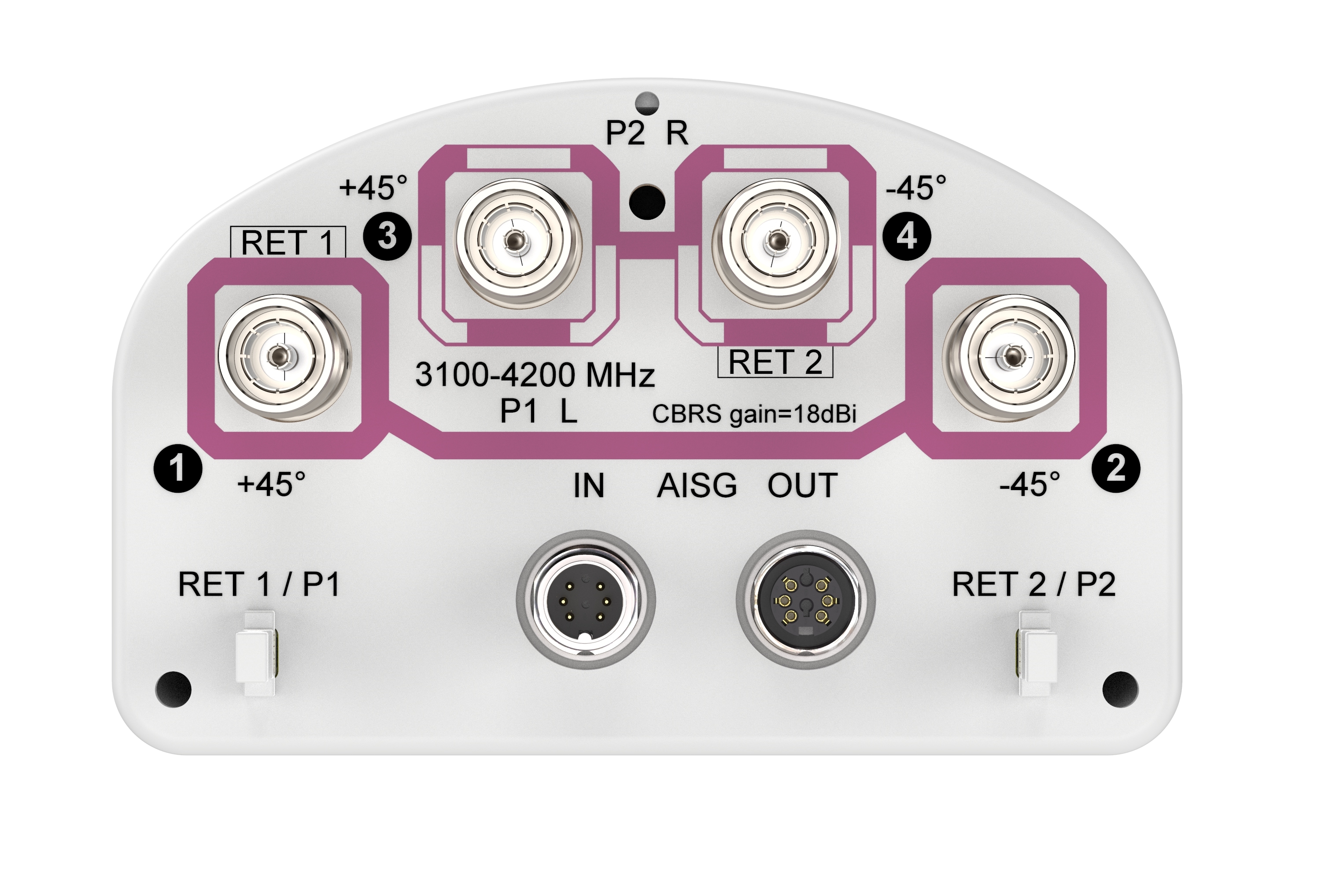 4-port sector antenna, 4x 3100-4200 MHz, 65°HPBW, 2x RET