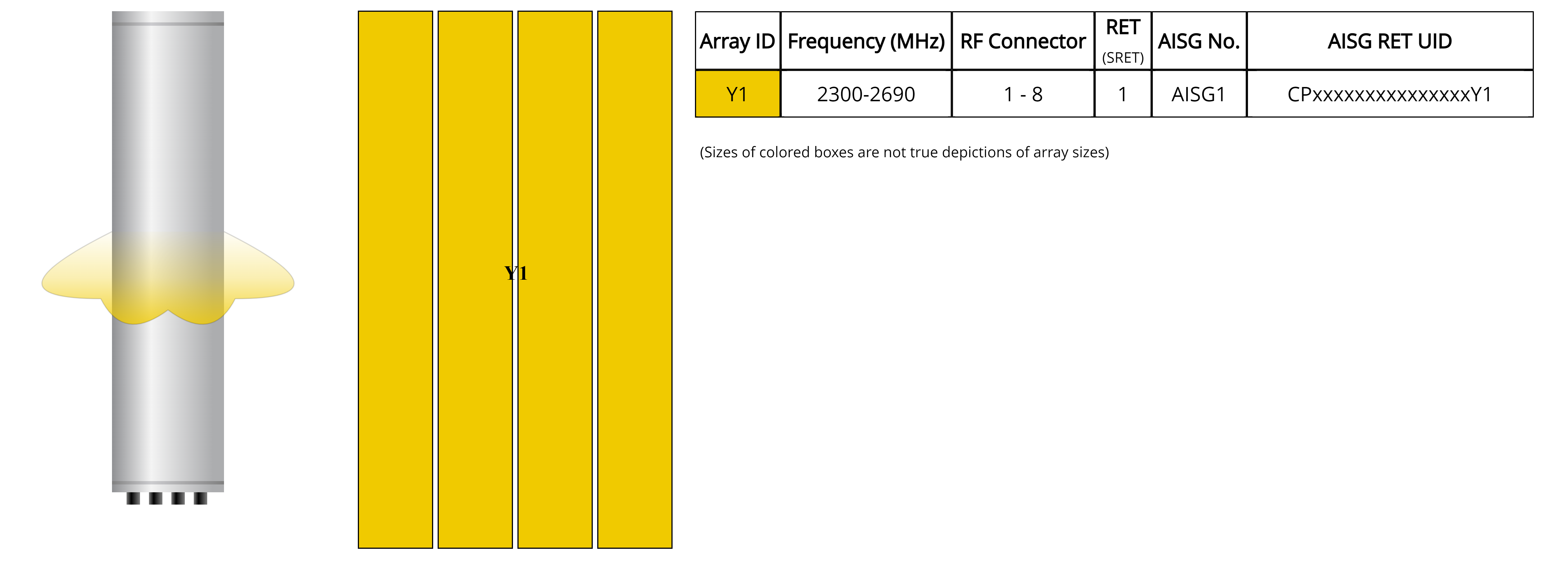 - Single internal RET control for all four antenna arrays