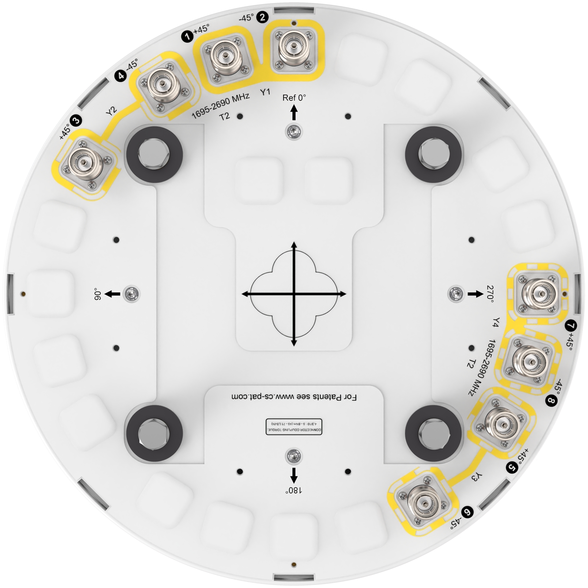 8-port small cell antenna, 8x 1695–2690MHz, 360° Horizontal Beamwidth, fixed tilt.