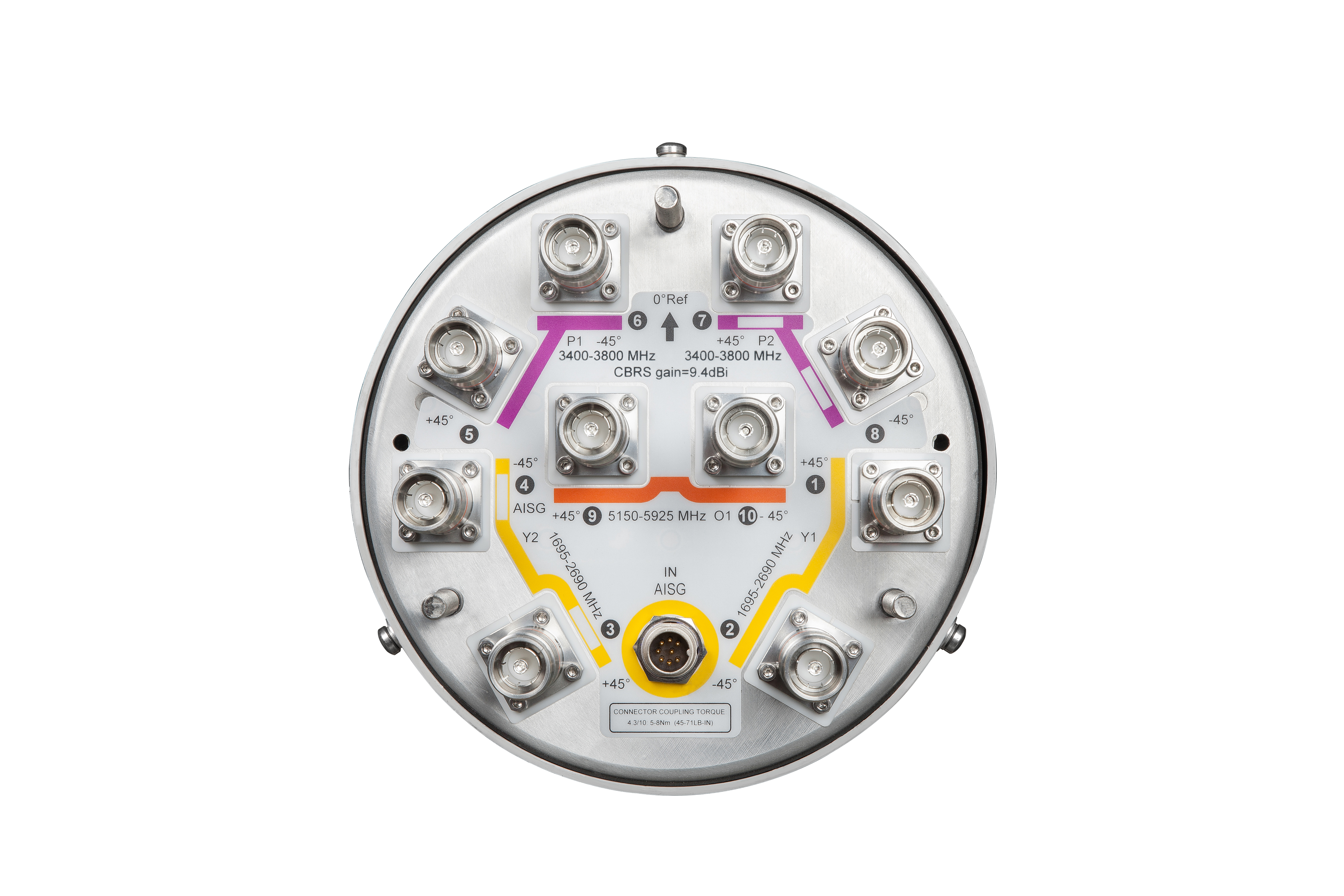 | Grounding Type | RF connector inner conductor and body grounded to reflector and mounting bracket |