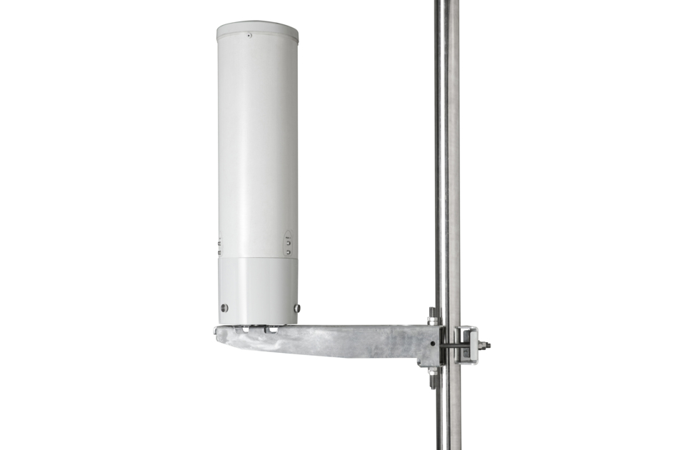 Small Cell mounting kit with shroud. Capability of mounting round antenna types on the side of a pole or building.