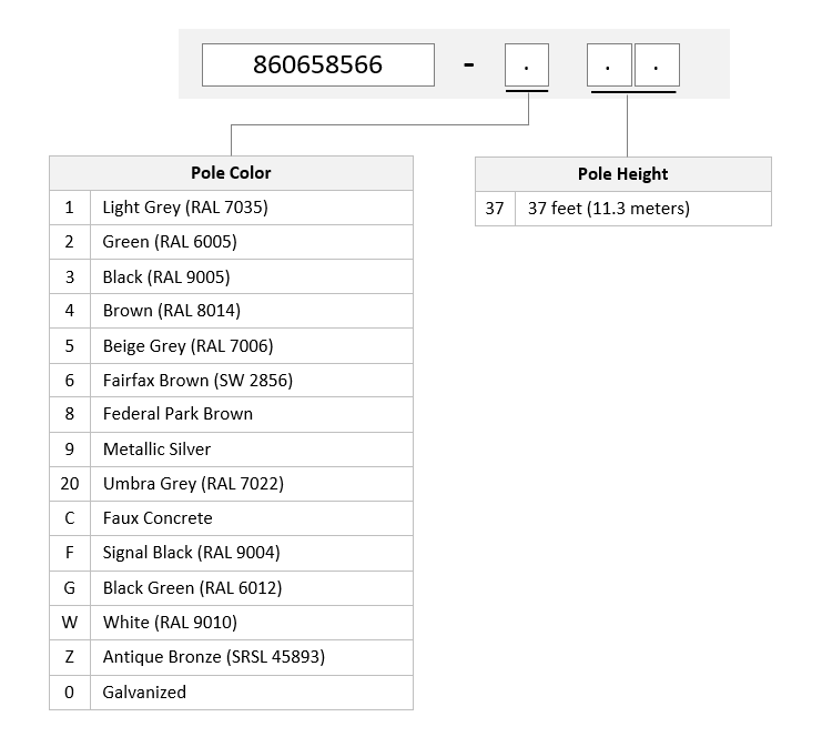 Part Number Pole Color Pole Height