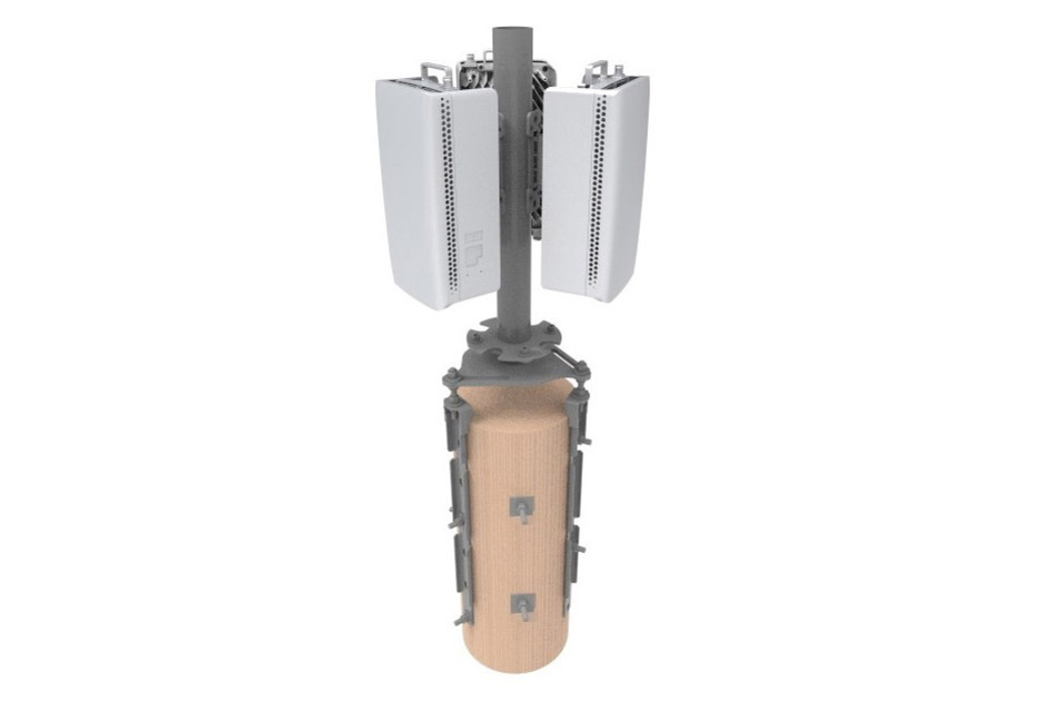 Mount for 5G mmWave equipment at the top of a wood pole 8"-14" diameter