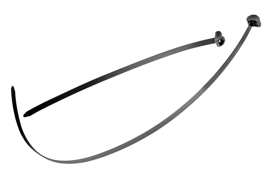 Heat-stabilized weather resistant acetal cable banding, 1/2 in x 18 in length with attached locking head, package contains 100 pieces