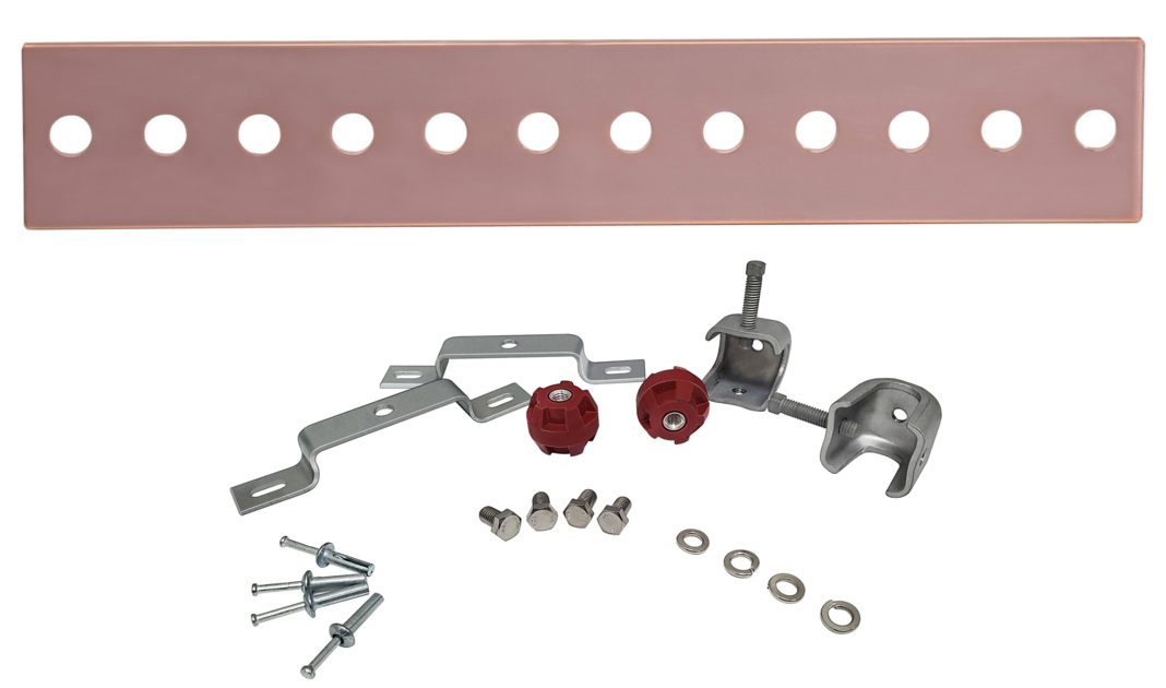 Copper Ground Buss Bar, 1/4 in x 2 in x 12 in (6.4 mm x 50.8 mm x 304.8 mm)