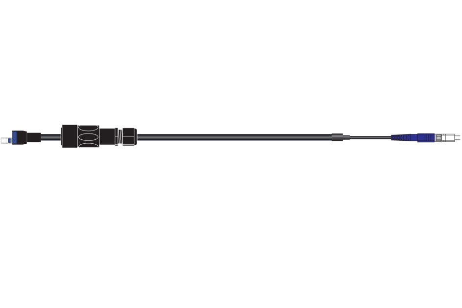 HELIAX® Discrete Fiber Jumper, Single Mode fiber, LSZH jacket cable, terminated with Uni-boot DLC at End 1, Simplex SC at End 2.