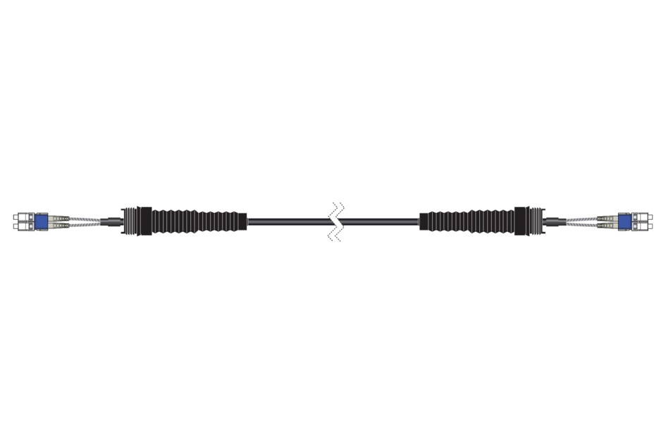 HELIAX® Discrete Fiber Jumper, 2F Multimode (OM4) fiber, 5.0mm LSZH jacket cable, terminated with Duplex LC at both ends, and pre-install NOKIA Rubber boot at both ends.