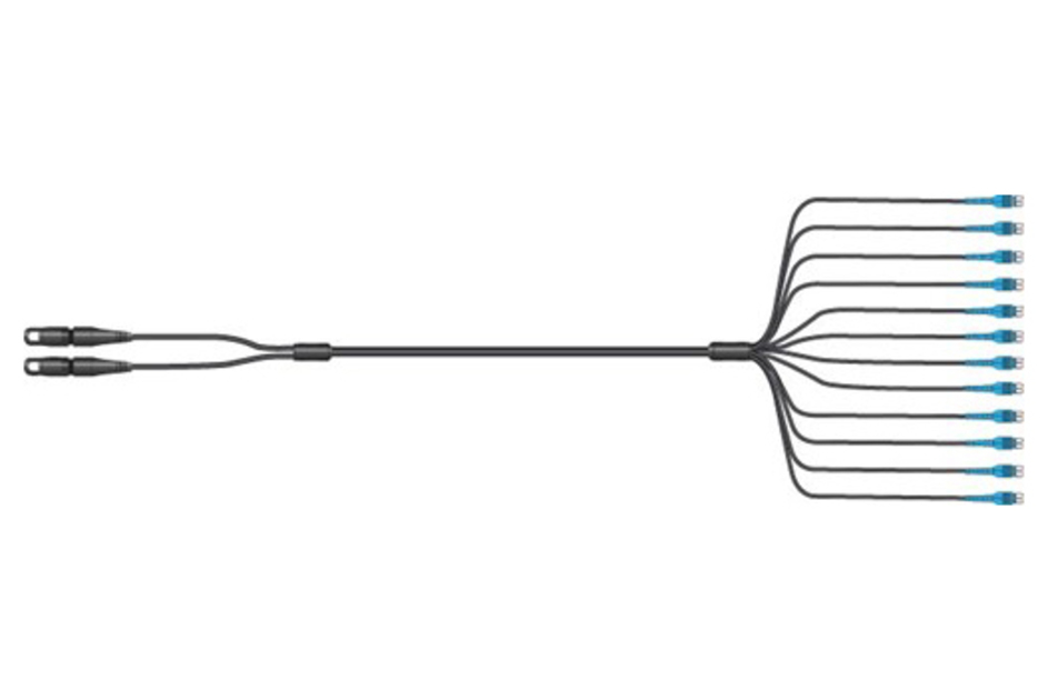 HELIAX® Discrete, outdoor rated, single mode 24 fiber cable assembly, End 1: OptiTip Compatible connector quantity 2 and End 2: Uniboot DLC. End 2 branch