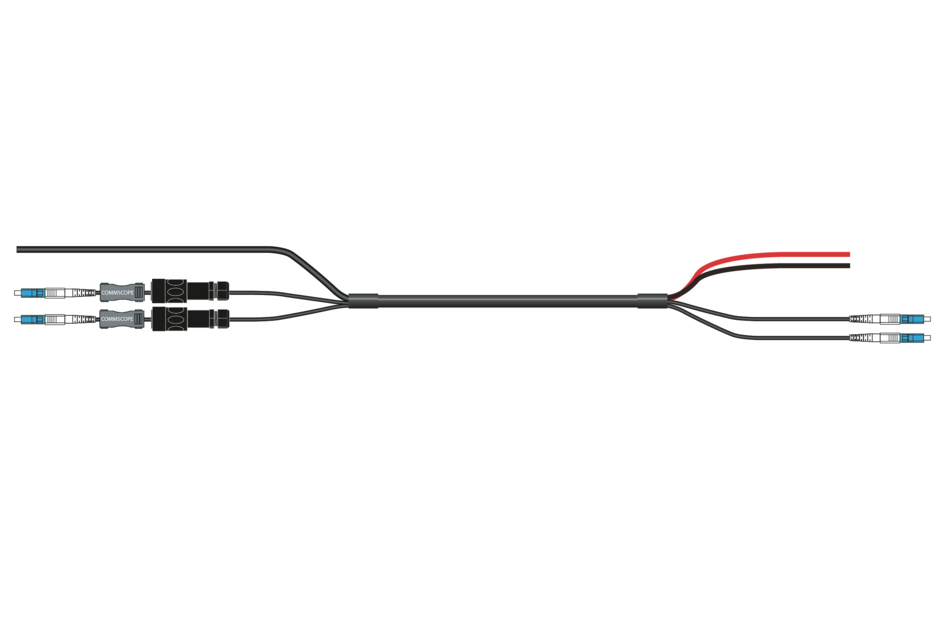 HELIAX® Hybrid Cable Assembly, 6-OVP box to RRU, Power Cord to RRU UR Type TC-ER, 2 Power conductors 6 AWG RRU, 6 AWG OVP, 2 fiber Bi-Di Jonhon adapter compatible, FullAXS, pvc jacket aluminum armor, OVP gland insert kit included