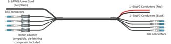 HELIAX® Hybrid Cable Assembly, 6-OVP box to RRU, Power Cord to RRU UR Type TC-ER, 2 Power conductors 6 AWG RRU, 6 AWG OVP, 4 fiber Bi-Di Jonhon adapter compatible pvc jacket aluminum armor, OVP gland insert kit included