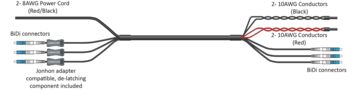 • 8AWG power cord connected to two 10 AWG conductors provides the equivalent of 7 AWG performance