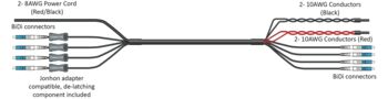 - 8AWG power cord connected to two 10 AWG conductors provides the equivalent of 7 AWG performance