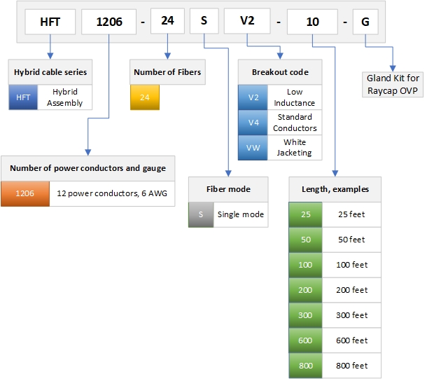 HELIAX® Hybrid Cable Assembly, Version 4, 6x12, QTY 12 UL Rated Conductor 19-Strand 6AWG, 24-Fiber, QTY 8 18AWG alarm wires, PVC jacket, aluminum armor, OVP gland kit included